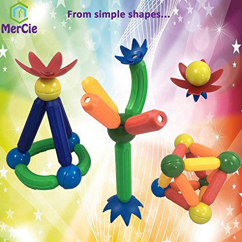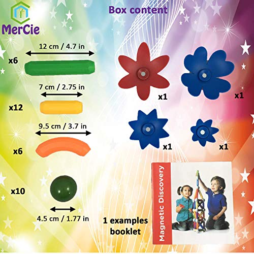 MerCie Blocchi di Costruzione magnetici | 38 Pezzi: Bastoncini magnetici e Palline XXL + Fiori + Scatola di plastica | Grande Creativo Regalo di Compleanno/Natale per Ragazzi e Ragazze dai 18 Mesi