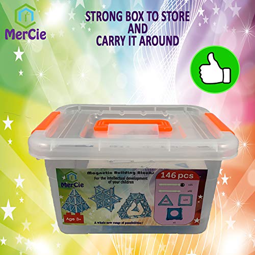MerCie Blocchi magnetici| 146 pezzi: bastoncini XL con potenti magneti, piastrelle e base + robusta scatola │ Giocattolo creativo per bambini dai 3 anni in s
