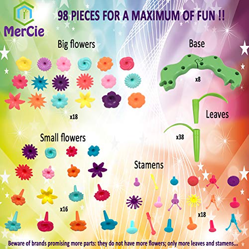 MerCie Giocattolo per Creare Giardini fioriti | 98 Pezzi | Assemblaggio di Fiori Multicolori | per Bambini da 3 Anni