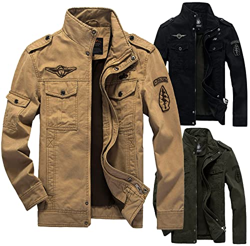MERCIYD Giacca Militari Uomo Giubbotto Classico in Cotone Giubbotto Bomber Multitasche Giubbotto Casual Antivento Cerniera Giacca