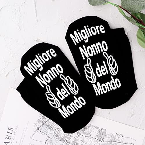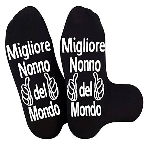 【calze uomo divertenti】 calzini uomo divertenti è stampato con un testo interessante sulla pianta del piede: Migliore Nonno del Mondo, design interessante con testo antiscivolo, un modo unico di complimento per portare a tuo nonno un diverso tipo di felicità.