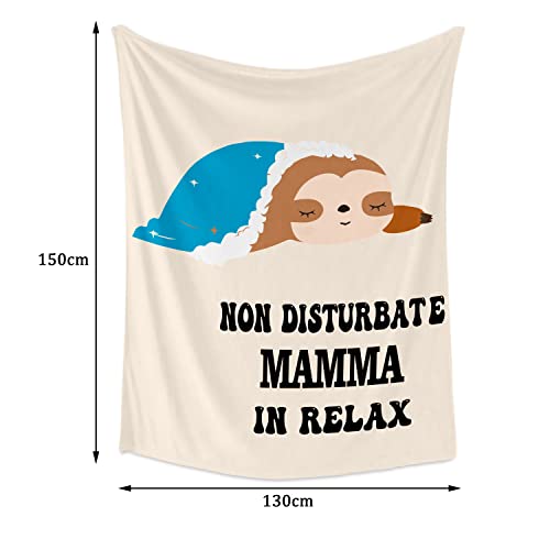 【Coperta bradipo mamma】 Una graziosa coperta mamma con un bradipo a riposo stampato su di essa: NON DISTURBARE MAMMA IN RELAX! Regalo perfetto per la mamma, crea il tuo angolo di riposo per la mamma.