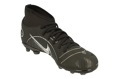 Nike Jr. Mercurial Superfly 8 Club MG, Little/Big Kids' Multi-Ground Soccer Cleats, Black/Metallic Silver-Medium Ash, 38.5 EU