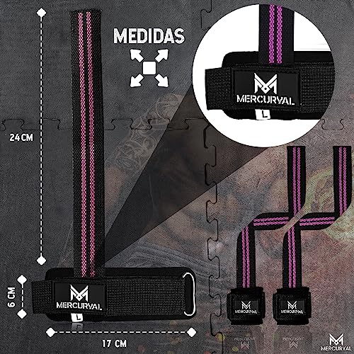 MERCURYAL Cinghie da Palestra con Fascia da Polsiere Palestra - Straps Palestra - Cinghie per Sollevamento Pesi Imbottite - Polsini Palestra - Fascette Palestra - Lifting Straps (Rosa)