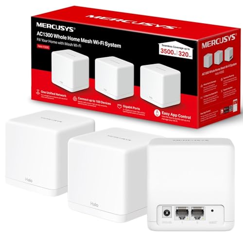 Mercusys AC1300 Sistema Wi-Fi Whole Home Mesh, copertura fino a 3.500 ft² (320 m²), Connessione oltre 100 dispositivi, porte Full Gigabit, Wi-Fi Dual Band, Controllo facile delle app, Halo H30G