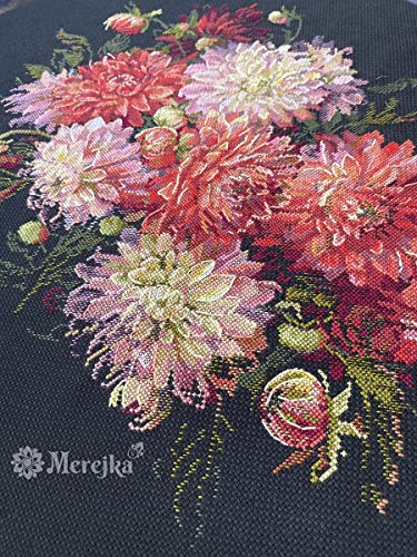 Merejka K-219 - Kit per punto croce, motivo: dalie, in cotone, multicolore, 30 x 40 cm