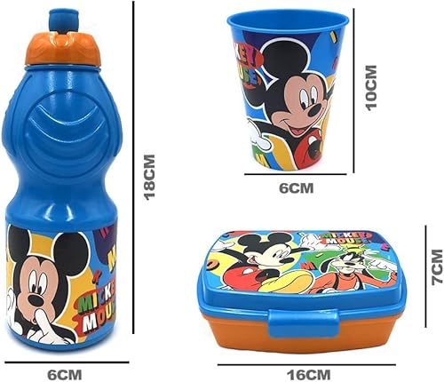 ICE TOYS Set merende porta pranzo plastica bottiglia da 400 ml 1 tazza 1 contenitore (Topolino)