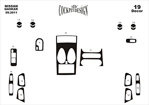 3D Esclusivo Coperture Cruscotto ADATTO A: Nissan Qashqai da Anno 09/2011 19 parti (Colore: Carbonio)