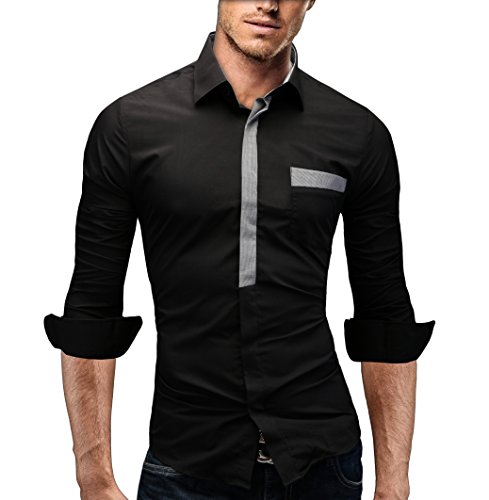 MERISH Camicia Uomo Slim Fit, Manica Lunga, Moderni,Tasca sul Petto Contrasto, Adatto per Tutte Le Occasioni,Casual e Chic, Diversi Colori Taglia S - XXL Modell 94 Nero M