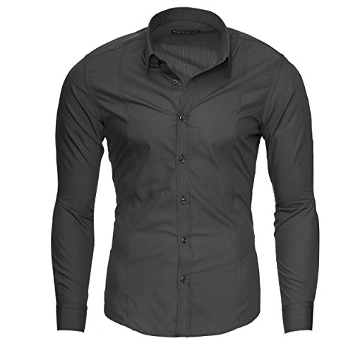 MERISH Camicia Uomo, Slim Fit Camicia Manica Lunga, premuto Il Pulsante Adatto per Tutte Le Occasioni,Casual e Chic, Diversi Colori Taglia S - XXL Modell 204 Grigio Scuro L
