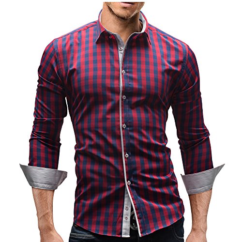 MERISH Camicia Uomo a Scacchi Slim Fit,Camicia Manica Lunga Adatto per Tutte Le Occasioni,Casual e Chic, Diversi Colori Taglia S - XXL Modell 144