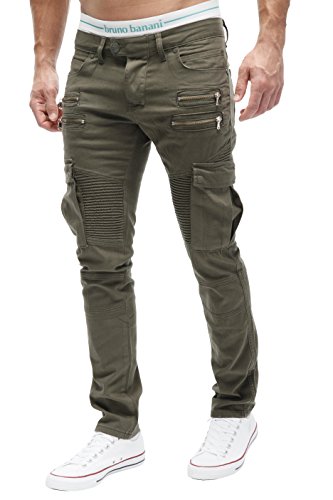 Merish Jeans da uomo, chino, con zip, tasche sulle gambe, 2055 verde oliva 34W x 32L