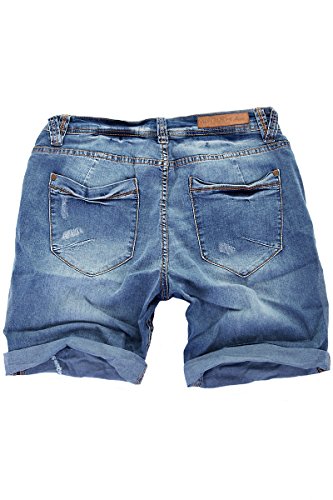 MERISH Jeans Corti Uomo Pantaloncini Strappati Bermuda Shorts J3007 Blu W33