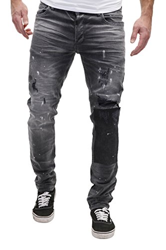 MERISH Pantaloni Uomo Jeans, Ultime Vernice Jeans Distrutti Moda Ultime Vernice Maschile patchato Cutted J2071 Nero 29/32