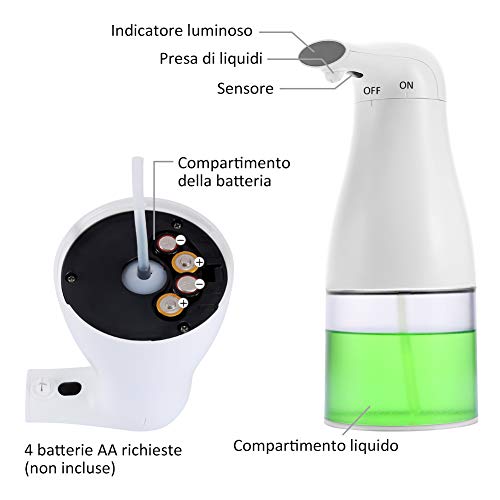 Merisny Dispenser di Sapone Automatico Schiumogeno 400Ml, Erogatore di Sapone Elettrico Touchless con Sensore per Cucina e Bagno Disinfettante Shampoo Sapone Liquido di Emulsione