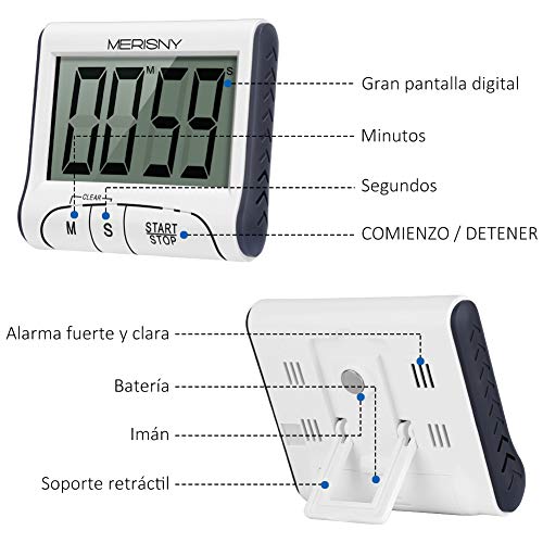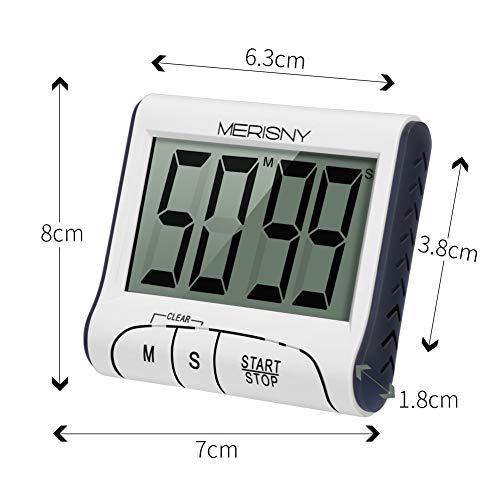 Merisny - Timer da cucina elettronico, timer digitale 24 ore con schermo LCD, conta alla rovescia, supporto magnetico - bianco (batteria inclusa)