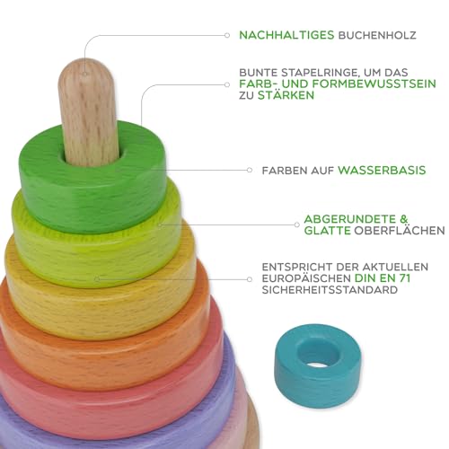 ✅ Progettato da pedagogo/interno e perfettamente adattato alle esigenze dei bambini. La torre pedagogica preziosa è composta da 8 anelli colorati arcobaleno, che il bambino può ordinare in base alle dimensioni e ai colori