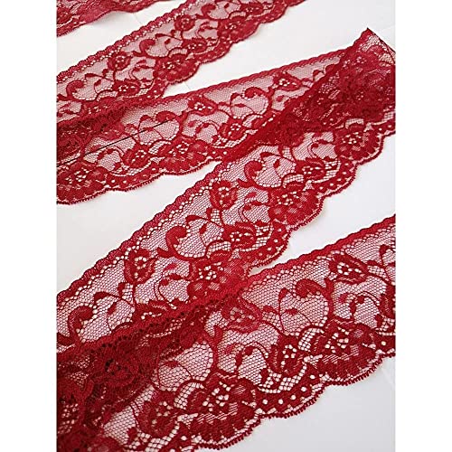 Merletto Valencienne rigido colore ROSSO BORDEAUX Altezza Cm.6 Confezione Mt.10, Nastro Pizzo con disegno floreale, ideale per bomboniere matrimonio cucito creativo sartoria, Art.1404018