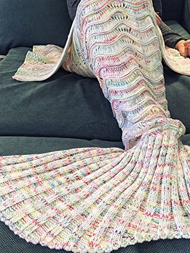 Mermaid Tail Coperta, morbida onda getta Soggiorno Sacco a pelo, sacchetto di campeggio a maglia Crochet tutte le stagioni per Adulti, Colore bianco