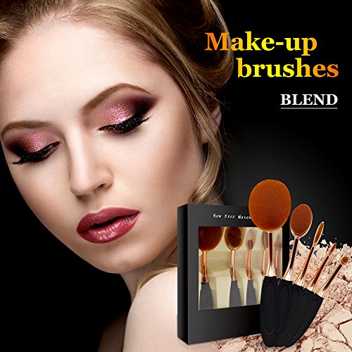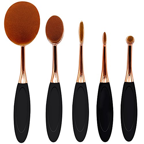 Mermaid Pennelli Make Up Set 5 Pezzi, Pennelli Ovali Spazzole da Denti Professionale per Trucco con Design Ovalizzato (Spazzolini Cosmetici Per Cipria, Correttore, Contorni, Fondotinta.) (rose oro)