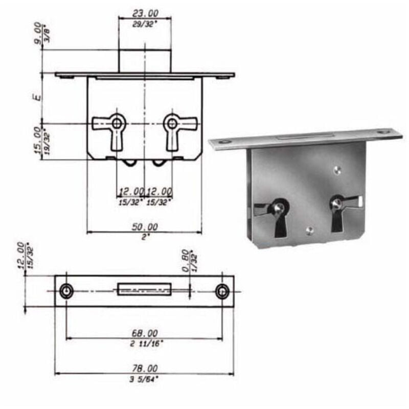 Serratura ferro lucido 1 leva Infilare cassetti eantine Frontale bordo quadro ottonato 2 uscite chiavi Fornita senza chiave