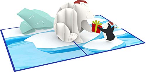 Merry Christmas CARD - Biglietto di auguri di Natale, con busta, motivo: orso polare e pinguino, in 3D