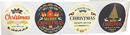 Merry Christmas Happy New Year adesivi 6,3 cm Round Circle Dots 4 design diversi 100 totale adesivo adesivi