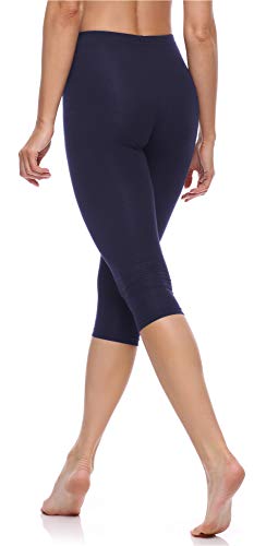 Merry Style Leggings 3/4 Pantaloni Capri Donna (Nero/Blu Marino, XXL)