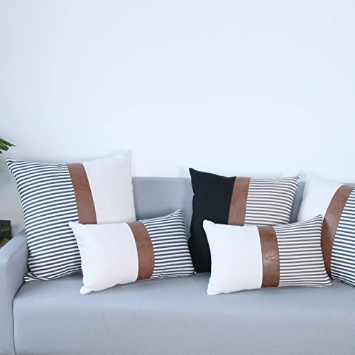▶【Design】Motivo a strisce patchwork, strisce di accento in pelle su questo elegante copricuscino decorativo. Questo design in pelle e cotone diviso dà al tuo divano o al tuo letto un po' di brio. Ma anche nella stanza del bambino o in auto.