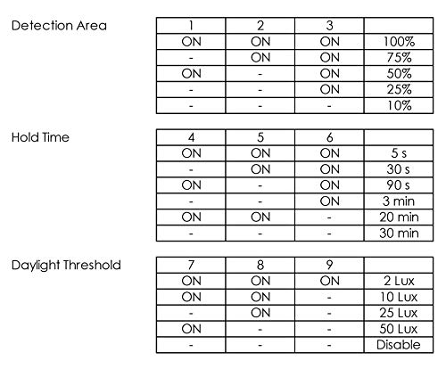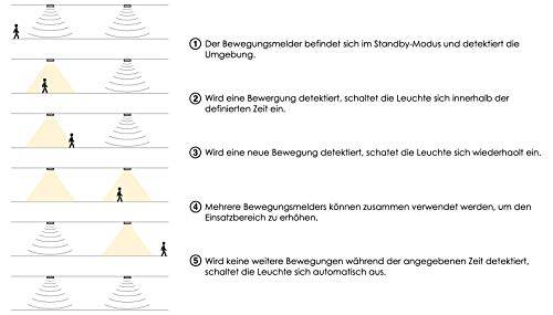POTENZA: Ideale per LED (lampada a muro / da soffitto) fino a 400W. Angolo di rilevamento 150°, portata fino a 6 m, 10% / 25% / 50% / 75% / 100% regolabile.