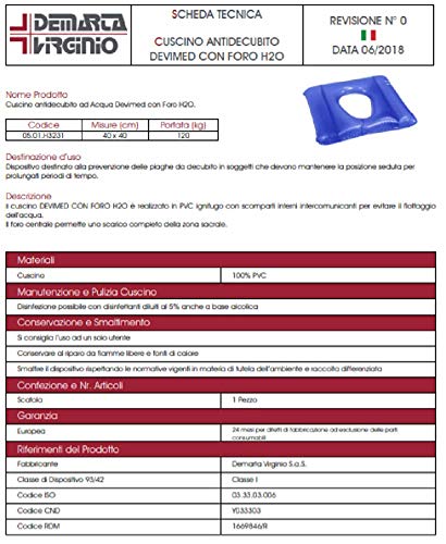 De Merta - Cuscini Antidecubito ad Acqua DEVIMED H2O con Foro - In PVC ignifugo destinato alla prevenzione delle piaghe da decubito. 40 x 40 Portata: 120 Kg