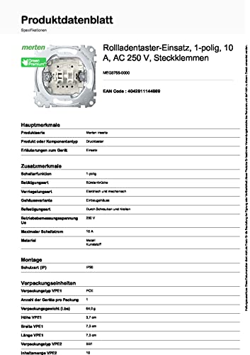 Merten, Modulo interruttore per tende a rullo, con morsetti, 10 A, AC 250 V- MEG3755-0000