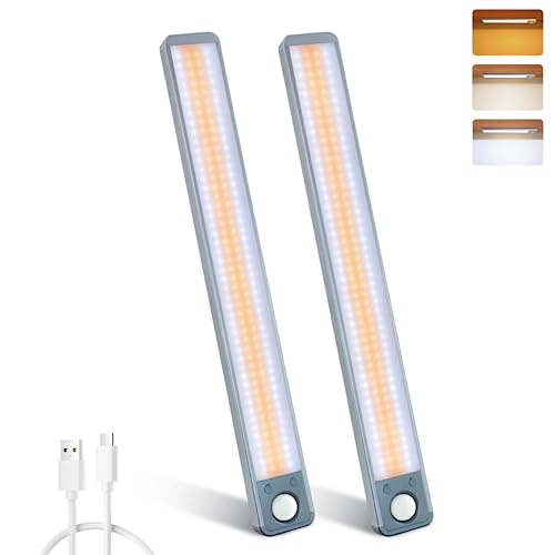 MERTTURM Luce Armadio 188 LED con Sensore di Movimento, 35cm 3000mAh Ricaricabile Luce LED Sottopensile, Luci Notturna Dimmerabile con 3 Colori chiari, Lampada Armadio per Cucina/Scale/Corridoio, 2 PZ