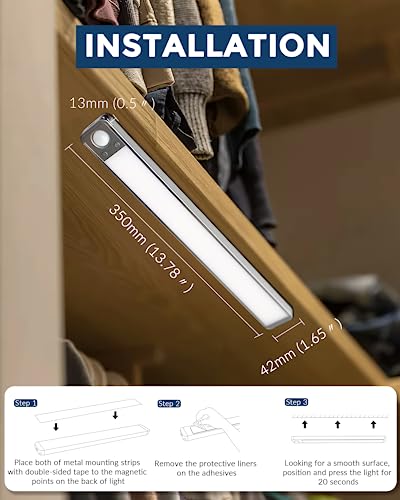 【Super facile da installare】 Non sono necessarie viti o strumenti. Basta semplicemente unire la luce dell'armadio e la striscia magnetica e poi attaccarla su qualsiasi superficie piana che desideri