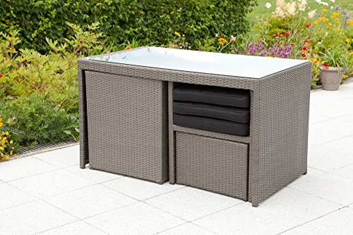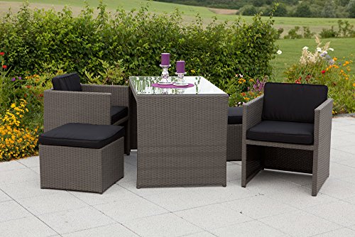 MERXX, 11 pezzi, mobili da giardino Merano, 2 poltrone, 2 sgabelli, 1 tavolo 128 x 70 cm, rattan sintetico, colore grigio naturale