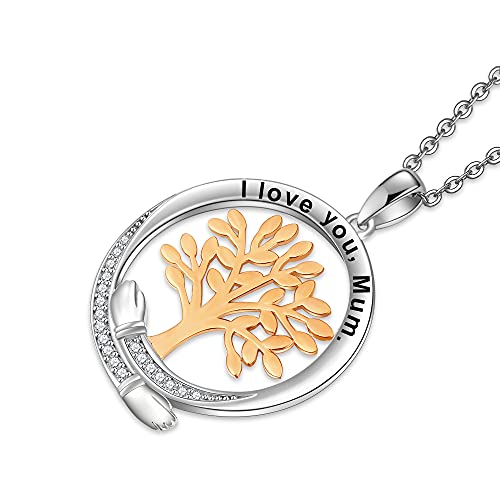 MESASTOM Collana da donna con ciondolo a forma di albero genealogico, in argento Sterling 925, con incisione personalizzata, idea regalo per mamma, nonna, figlia, sorella, Argento sterling, cristallo