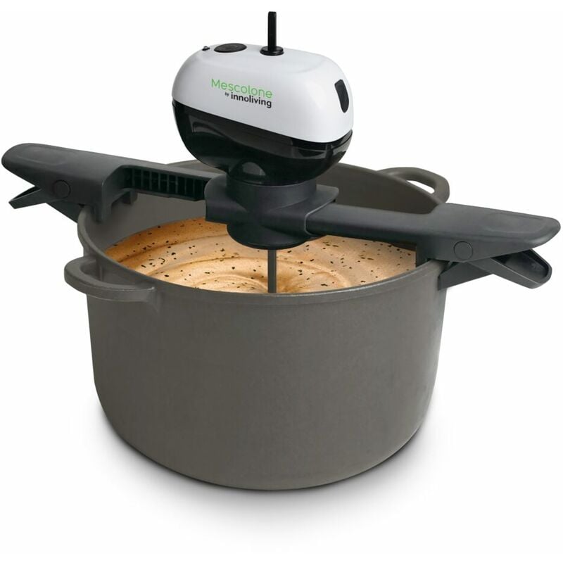 MESCOLATORE AUTOMATICO Niente più pentole bruciate! Niente più fatica per mescolare a lungo! • Perfetto per mescolare risotti, zuppe, polenta, besciamella e altre preparazioni. • Cordless • Alimentazione tramite batteria integrata ricaricabile al litio • Durata batteria ricaricabile (piena carica): 2 ore • Tempo di ricarica completa: 3 ore • Regolabile in altezza: 10-20cm • Regolabile in larghezza: 13-23.5cm • Accessori lavabili in lavastoviglie • Potenza 5W • Caricabatteria in dotazione: Input: 100-240V~50/60Hz 0,25A Output: 4,2V - 0,6A