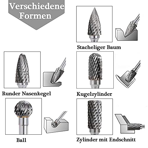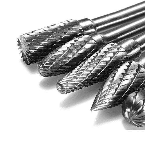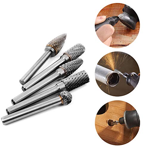 Mesee Set di 5 frese in carburo di tungsteno, per fresa, in acciaio al tungsteno, lama in acciaio al tungsteno, 6 mm, codolo da 10 mm, testa rotativa per taglierino rotativo Dremel Rotary