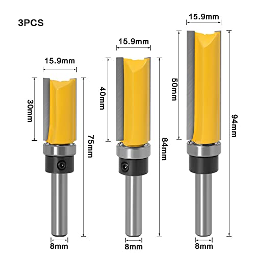 Mesee Set di 3 frese a filo, fusto da 8 mm, fresa dritta, fresa per router bit, fresa per legno, fresa per legno, set con cuscinetti a sfera, base per legno, fresa professionale