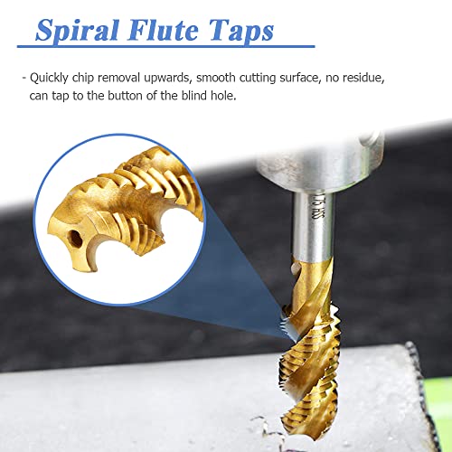 【Alta Qualità】Questi maschi a spirale con scanalature sono realizzati in acciaio ad alta velocità con una superficie rivestita in titanio per una maggiore durezza, resistenza alla ruggine e durabilità.