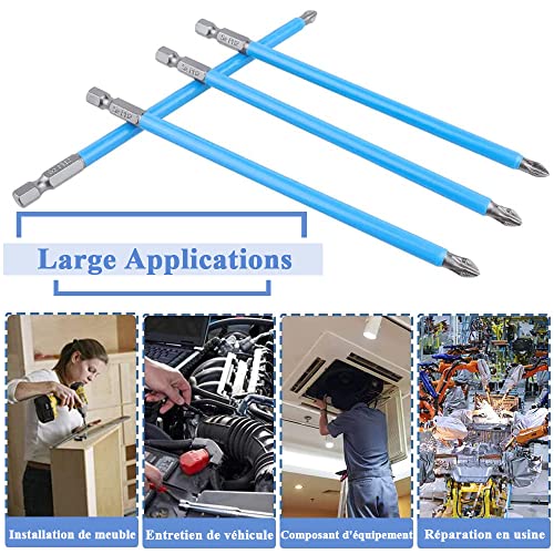 Mesee 10 x 150 mm, punte per cacciavite a croce PH2, punta per cacciavite Phillips a percussione, punte antiscivolo con asta esagonale in acciaio S2 per cacciavite cacciavite trapano elettrico