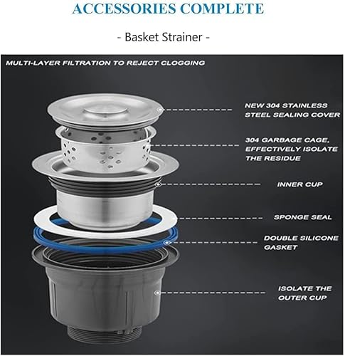 Le aperture standard di scarico da 8,9 cm si adattano a qualsiasi unità di smaltimento dei rifiuti. Il sottorivestimento fonoassorbente e i cuscinetti in gomma riducono al minimo il suono del drumping dell'acqua, riduce le vibrazioni e la condensa, mantiene gli armadi asciutti e puliti.