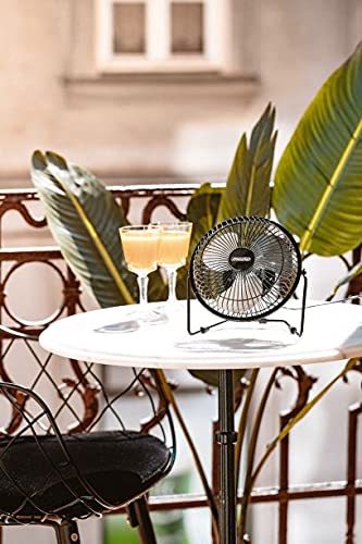 Il ventilatore è leggero e piccolo, che facilita il trasporto e il posizionamento su una superficie limitata. Grazie al suo diametro di 15 cm e al flusso d'aria di 7,3 m³/min, il ventilatore può anche raffreddare una stanza più ampia. Il vantaggio è anche il suo lavoro silenzioso, che non distrugge perché il volume è di soli 60 dB.