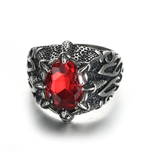 Mesnt Anelli Acciaio Chirurgico Anelli Uomo Gotico Anello Artiglio del Drago con Zirconi Ovale Anello in Acciaio Rosso Taglia 20