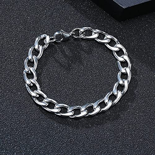 Mesnt Bracciali Donna Uomo, Bracciale Argento per Charm, 18cm Bracciale a Catena in Acciaio al Titanio, Argento Bracciale a Catena per Uomo Donna, Argento-9mm