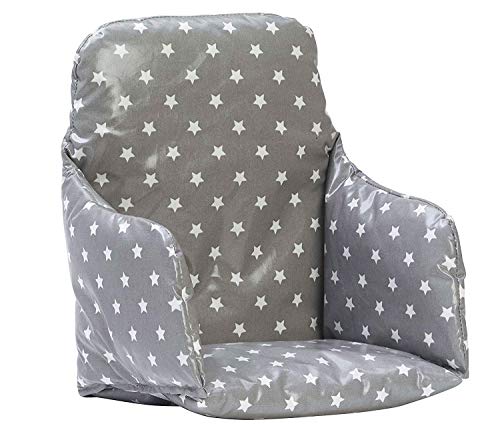 Messy Me Cuscino per Seggiolone - Tessuto di Tela Cerata Facile da Pulire (Grigio con stelle)