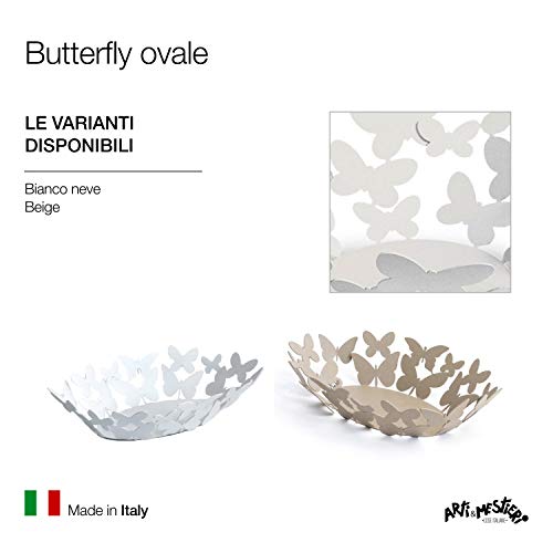 Arti & Mestieri Butterfly - Centro Tavola Ovale di Design 100% Made in Italy - in Ferro, 43 x 25 x 9 cm - Bianco Neve