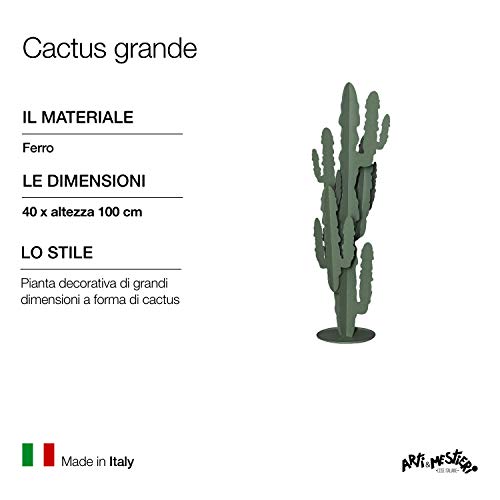 Arti & Mestieri Cactus - Pianta Decorativa di Design 100% Made in Italy - in Ferro, 40 x 100 cm - Verde Salvia