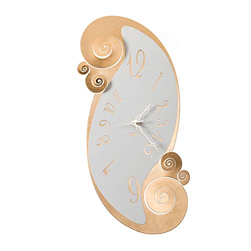 Arti & Mestieri Circeo - Orologio da Parete di Design 100% Made in Italy - in Ferro, 32 x 70 cm - Oro e Bianco Marmo