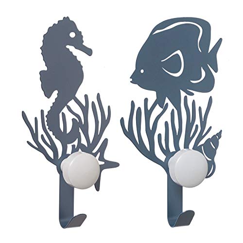 ARTI E MESTIERI Set 2 Ganci Appendiabiti Asciugamani in Ferro Colore Azzurro MOD. Nettuno Design
